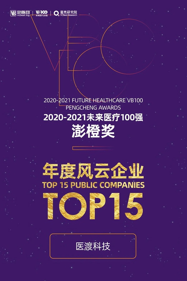 第五届未来医疗100强大会颁奖晚宴上,动脉网对外发布了《2020-2021未来医疗100强系列榜单》,医渡科技凭借强大的技术实力、优秀的创新能力和突出的行业影响力成功上榜,与阿里健康、泰格医药、信达生物等多家企业同时荣获“2020-2021未来医疗100强·澎橙奖·年度风云企业”。
