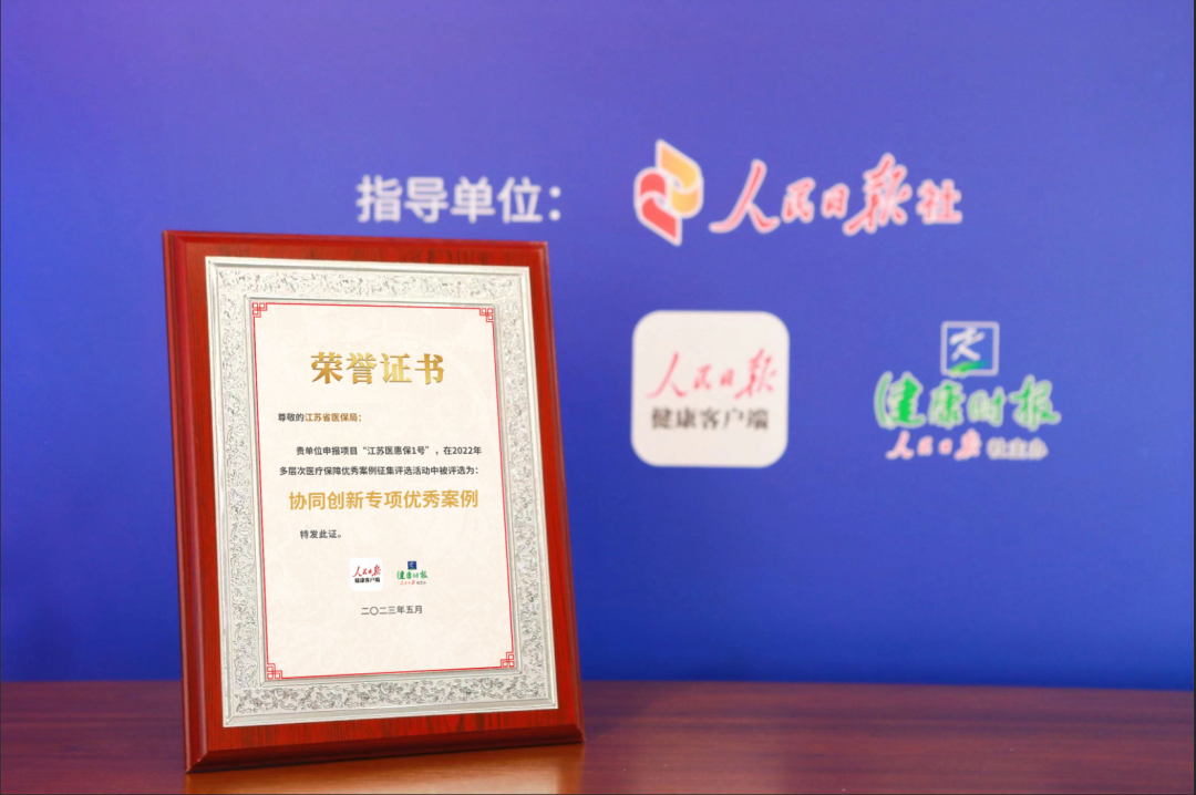 “江苏医惠保1号”获奖荣誉证书